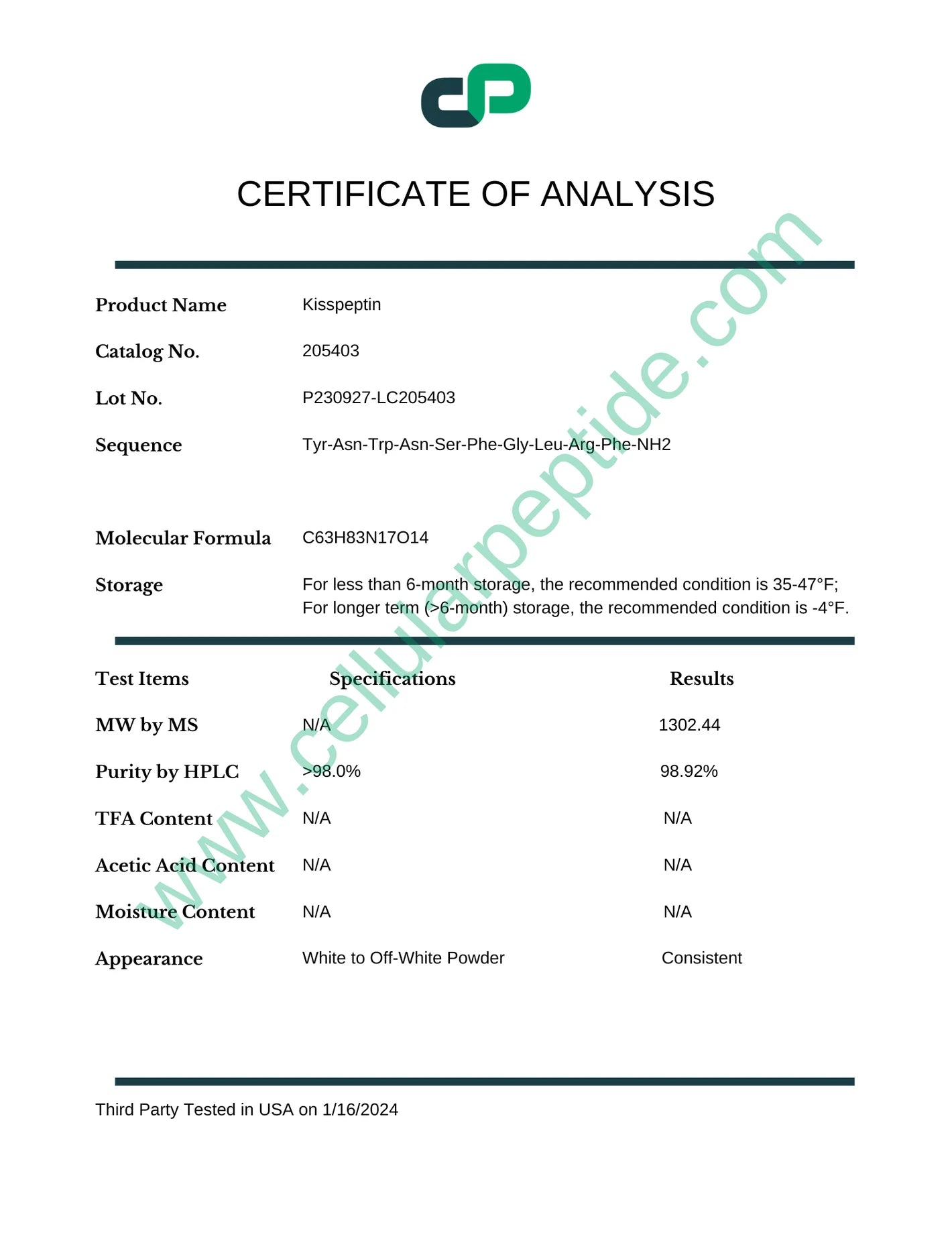 "Client tried everything to balance hormones for years to no avail. Kisspeptin fixed everything and she has been balanced, loving it, for many months." - D. Grant, HP from Arizona